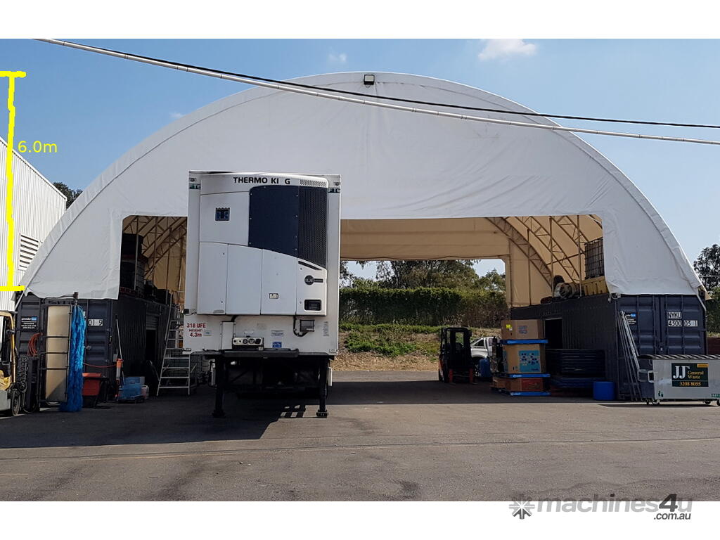 This leaves 13.5m gap between the containers. The containers remain under the structure which gives additional dry storage space on top.