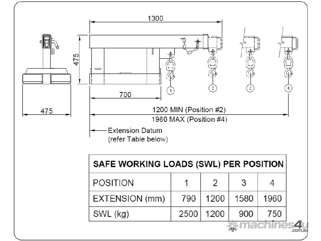 The type FJCS25 Fixed Jib (Short) is designed as an affordable general purpose Jib able to manoeuvre in confined spaces, with a 1.96 metre reach when fully extended.