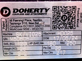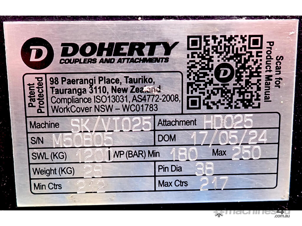 New 38mm pin Doherty D-Lock Hydraulic Excavator Quick Hitch Coupling to suit 2-5 Ton machines.
