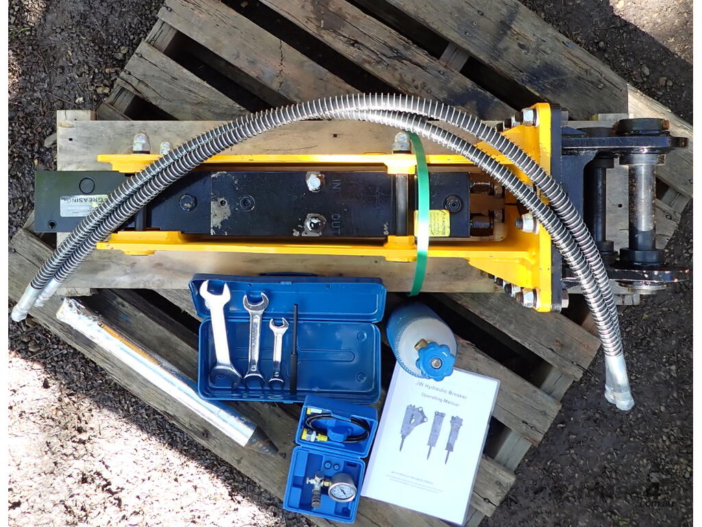 Comes with a 52mm Point Moil, Hoses, Manual, Toolbox with various Spanners etc. and a Nitrogen Gas Bottle & Pressure Gauge Kit for regassing the breaker.