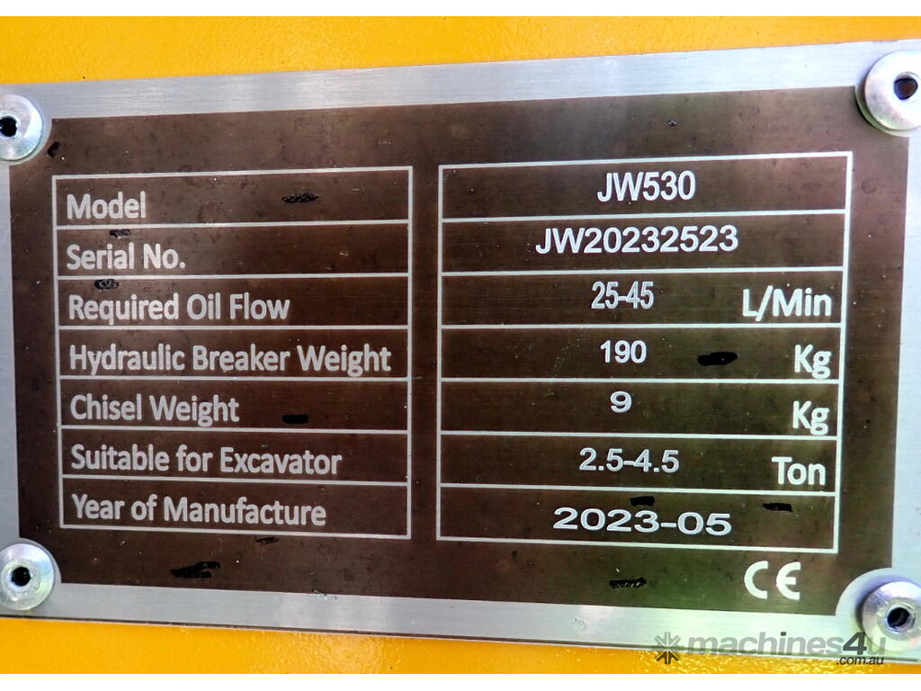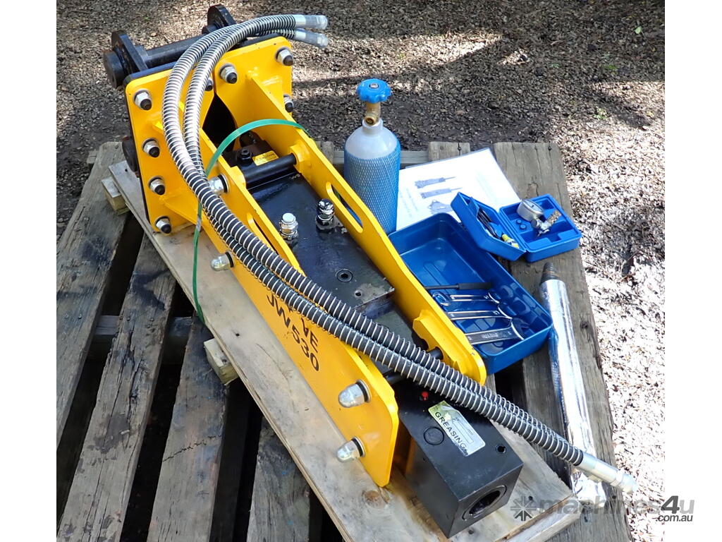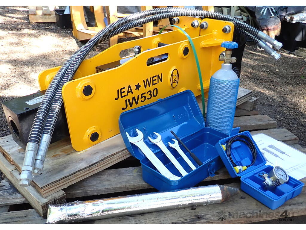 New Jea Wen JW530 Excavator Hydraulic Hammer Rock Breaker to suit: 2-5 ton machine. Great for loosening and breaking up rock, rocky ground, concrete, tarmac, paved areas, demolition etc.