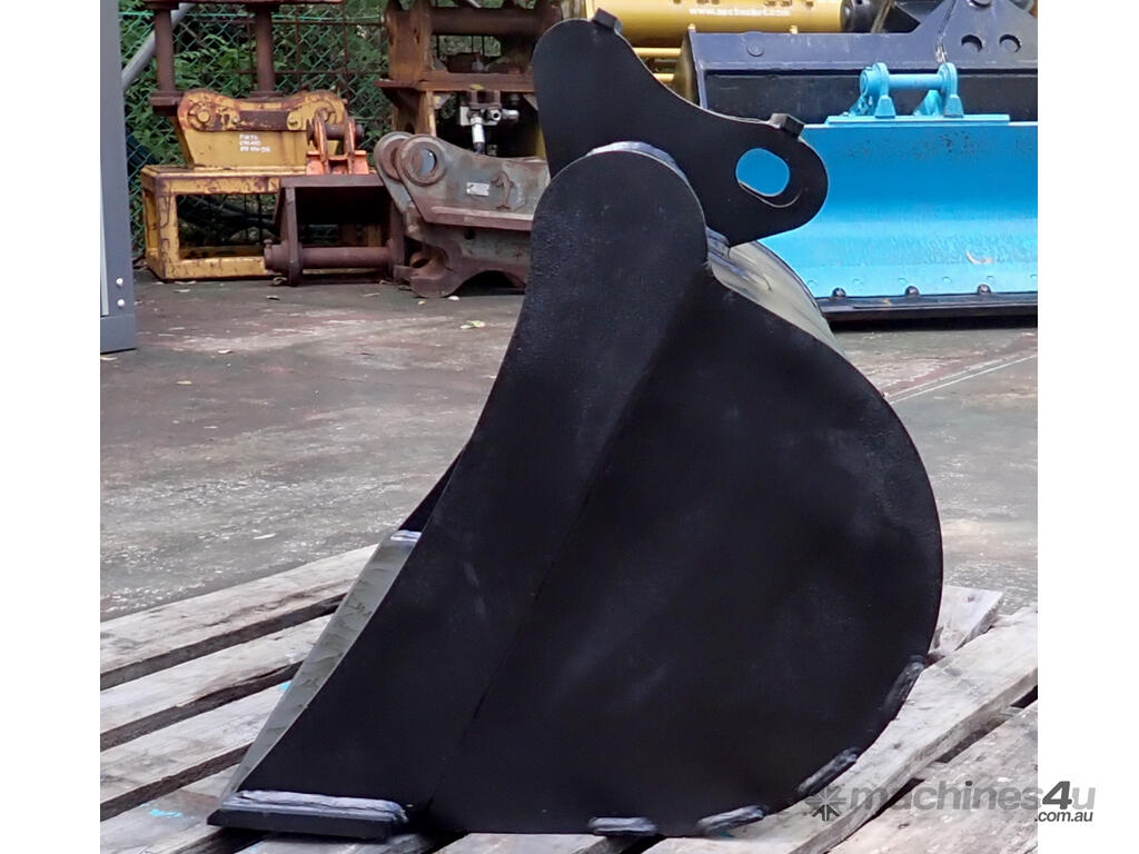 The bucket has Ear Plates welded on, ready for you to weld on pin Bosses to suit your machine's Pin Diameter and Pin Center to Pin Center distance (CtoC), then you have a top quality, new Australian made bucket for cheap!