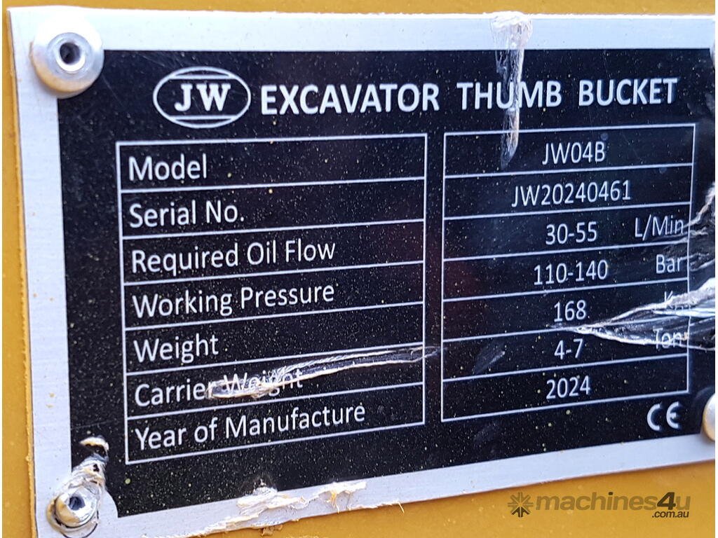 New Jen Wea JW04B Excavator Hydraulic Thumb Grapple Grab Bucket suit 4-9 Ton machine. The bucket moves as a normal bucket attached to your hitch or to your dipper arm. The Thumb moves Hydraulically.