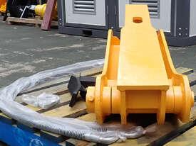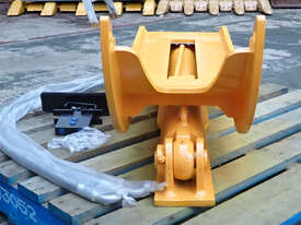 This thumb is complete and requires no extra brackets. The flat plate is simply welded to the inside of your machine's Dipper Arm, and the 2 hoses are connected to your machine's Auxiliary Hydraulic hose lines.