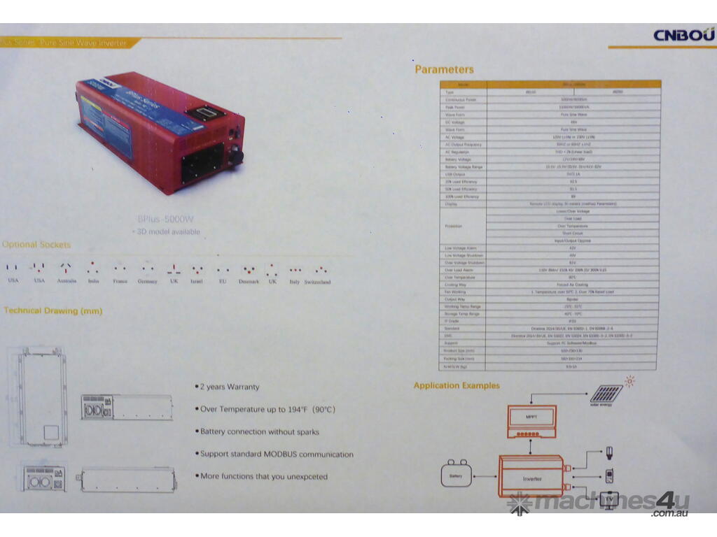 Model: CNBOU / 8ZED 5000S-48V-BPlus. This is Brand New, Unused stock in perfect condition that has come from a closed down Solar Supplier. This is Not a Grid-Connect Inverter, it is for Off-Grid use with a 48volt Battery Bank setup.