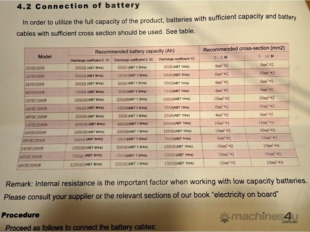 * 1x Positive (red) & 1x Negative (black) Cables to connect to your Battery Bank.