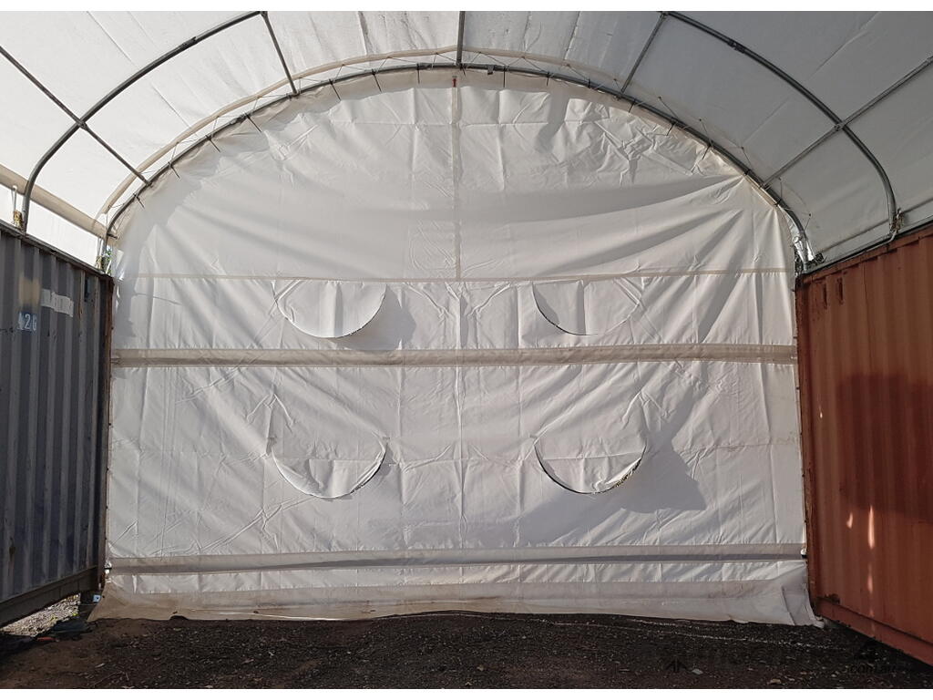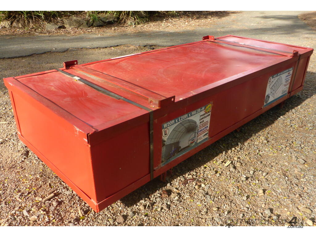 Model C2020-E, covers 20 x 20 feet, 6.5 feet high or 6.1m x 6.1m x 2m high (plus the height of the containers).