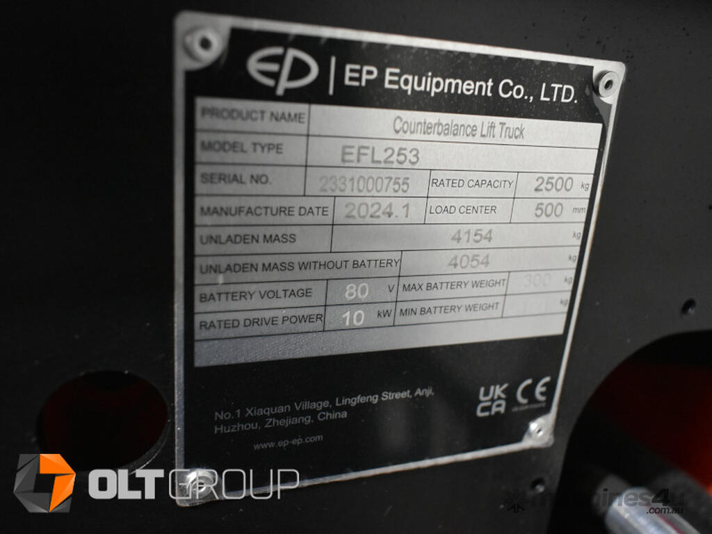 NEW EP EFL253 2.5 TONNE ELECTRIC FORKLIFT FOR SALE:
