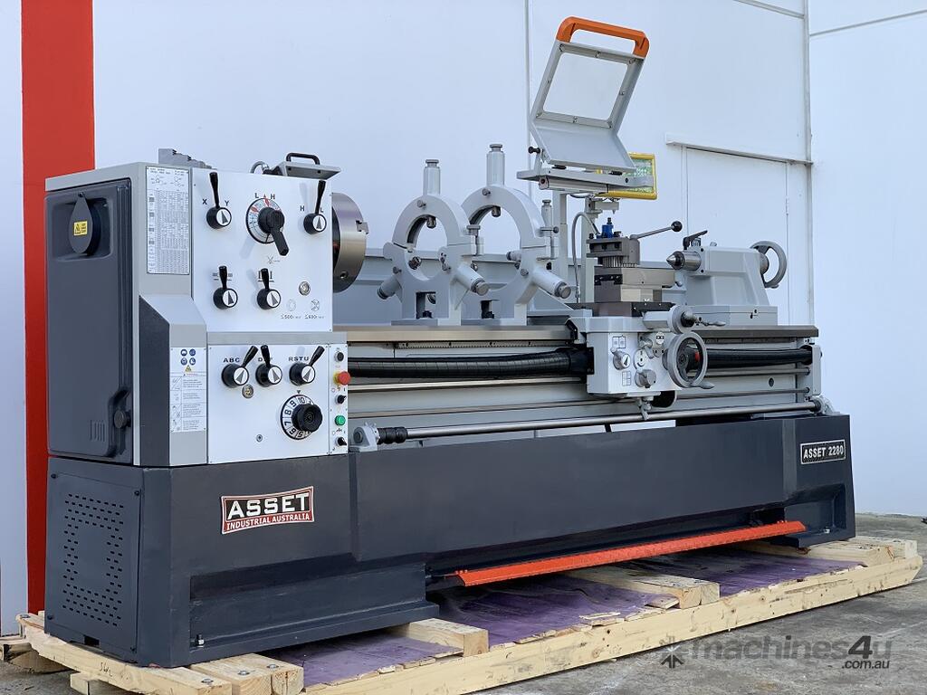 ASSET 2280. Big Bore Lathe. Steelmaster Heavy Duty, 2000mm Centres, 560mm Swing, 80mm Bore,3, 4 Jaw Chucks, Faceplate, Steadies, 2 Axis Easson DRO, Quick Change Post & More.V