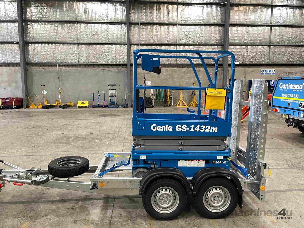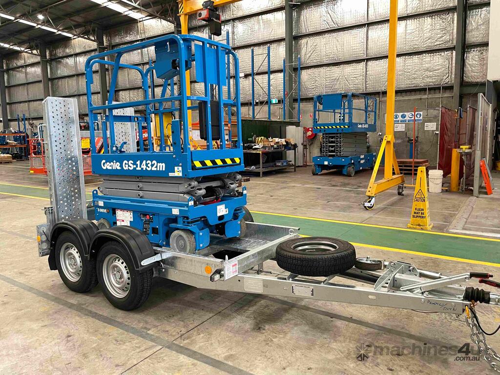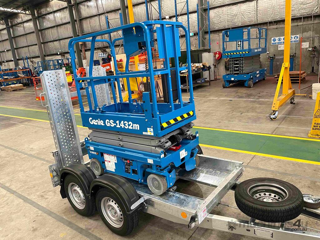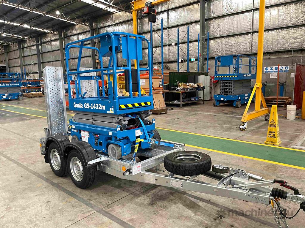New Genie 14ft Electric Scissor Lift and Galvanised Brian James trailer Combo