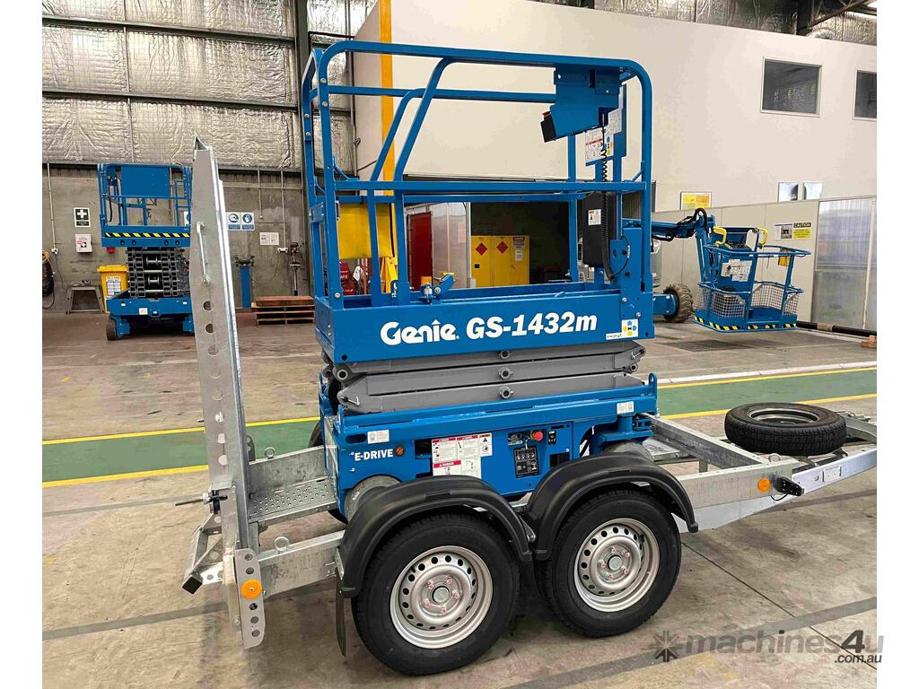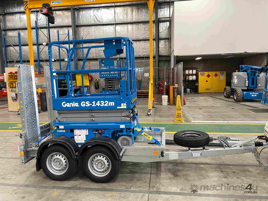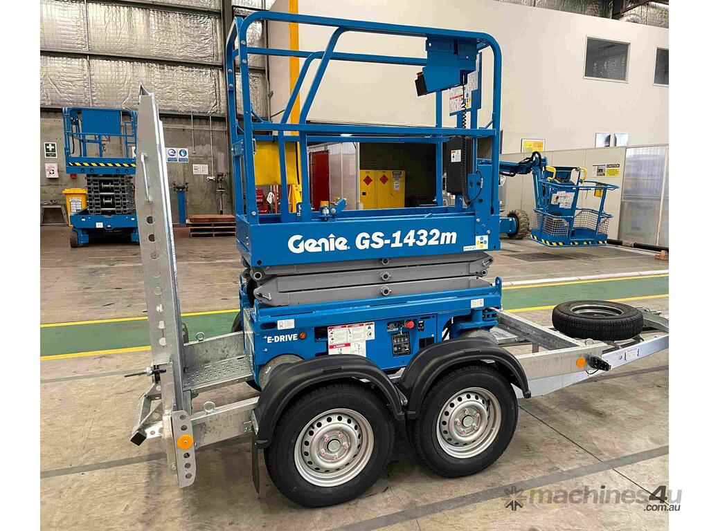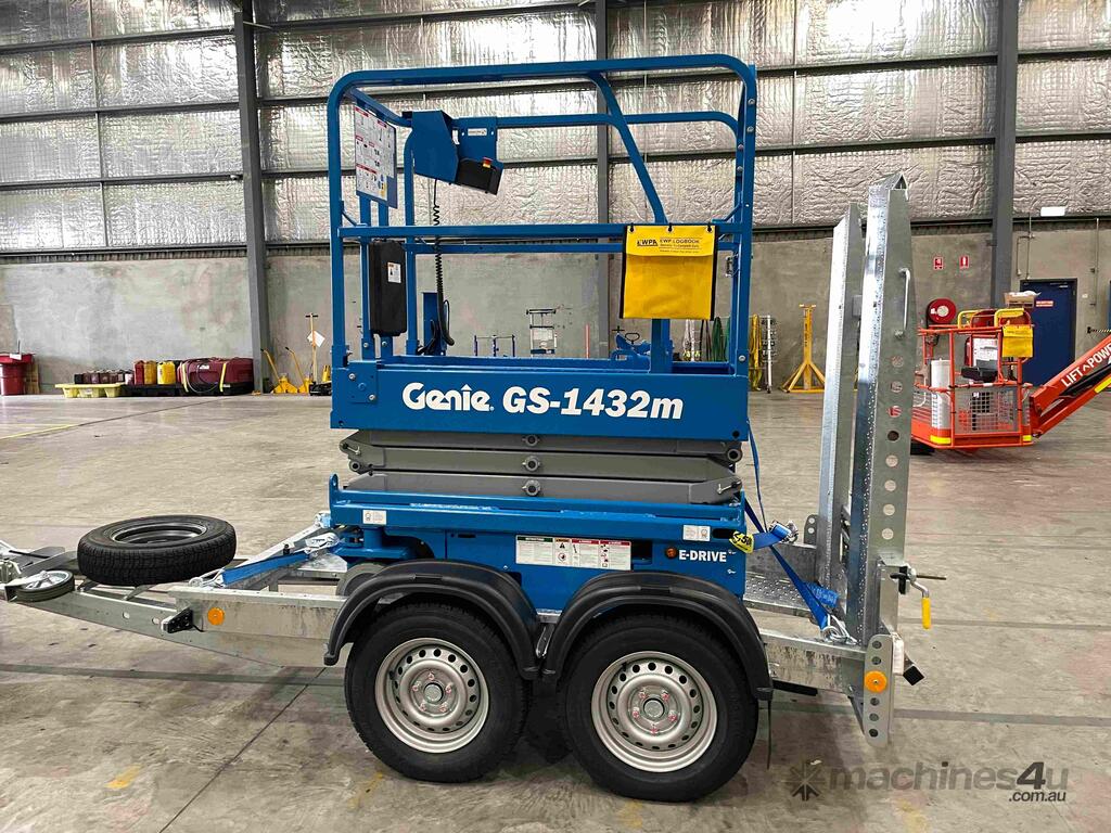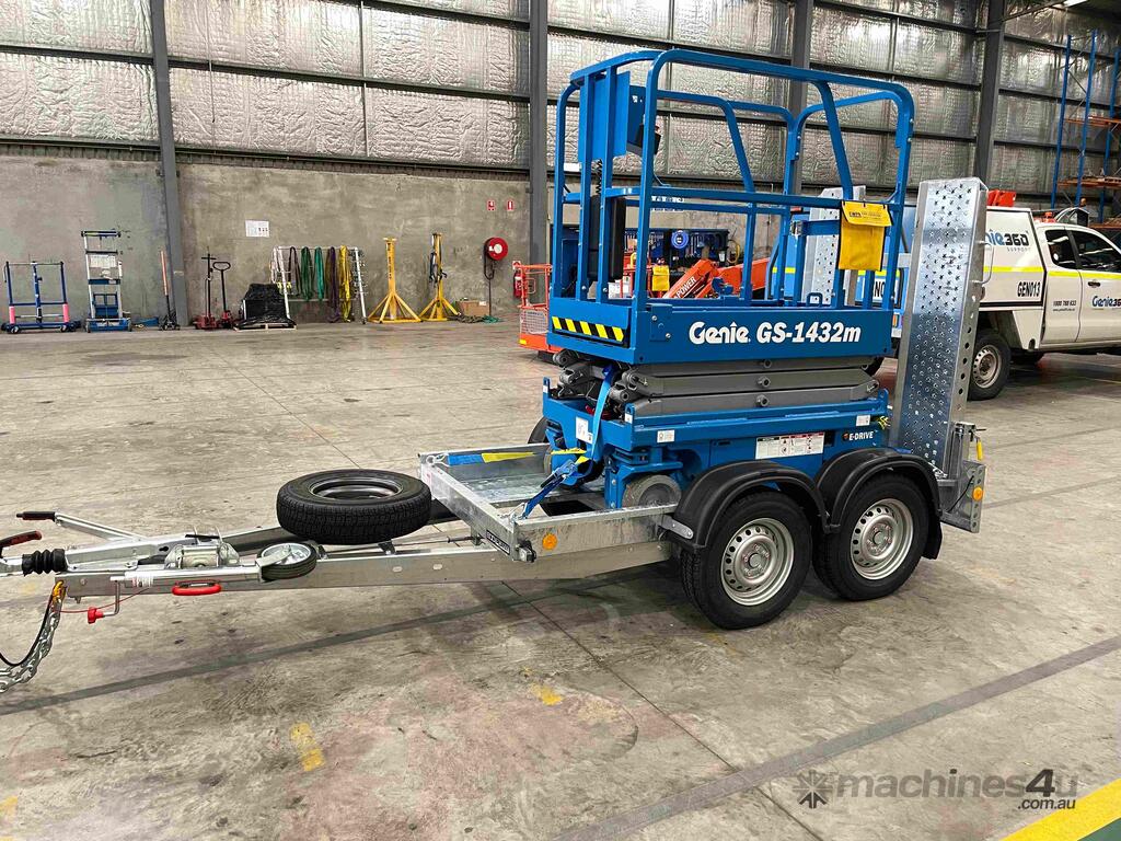 New Genie 14ft Electric Scissor Lift and Galvanised Brian James trailer Combo