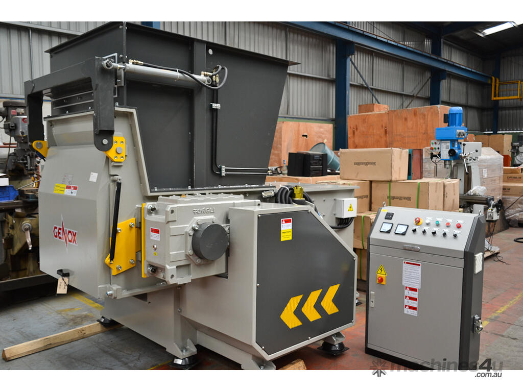 NEW Genox V1000 Vision Series Single Shaft Shredder with vertical crammer.