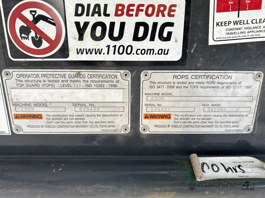 CP: CIRCA null,New Holland,E30B,Excavator (Rubber Tracked),3 Cyl,Diesel,Odometer not visible,3113 (Hrs. Showing on Hour meter),Colour: Yellow,Rego. No: 42205D NSW,Serial No: PW14-48202,ROPS No: R25433,FOPS No: R25433,Sold with No Plates,Key No: 25