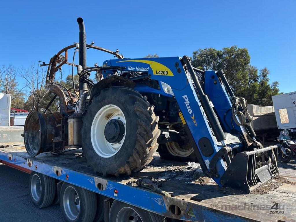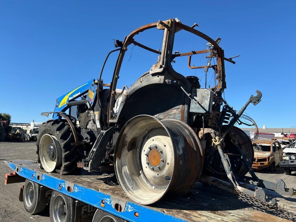CP: CIRCA null,New Holland,T6.165,Tractor / Loader,4 Cyl,Diesel,Odometer not visible,Hourmeter not visible,Colour: Blue,Rego. No: NP(13006E), Unregistered NSW,Serial No: N/A,Sold with No Plates,WOVR Status: WOVR N/A,Incident Type: Fire