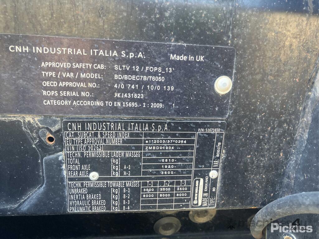 No C/P,New Holland,T6050,Tractor / Loader,Engine #: 1869991,6 Cyl,Diesel,Odometer not visible,Hourmeter not visible,Colour: Blue,Unregistered,Serial No: ZMBD01904,Sold with No Plates,WOVR Status: WOVR N/A,Incident Type: Not Applicable