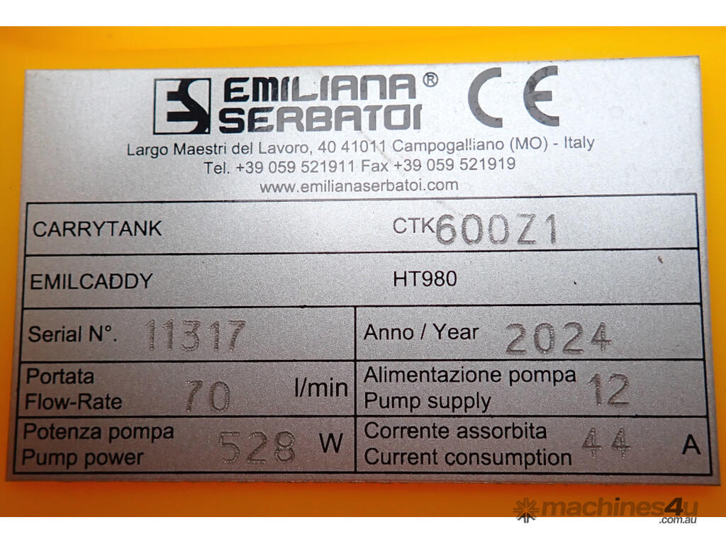 New Italian made, Emiliana Serbatoi 600L Carrytank® CTK 600 Diesel Fuel Cell Tank with 12v Pump, Bowser trigger & Level Gauge.