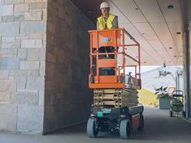 Refreshed design delivers electric drive, for up to double the battery life of a standard scissor lift.