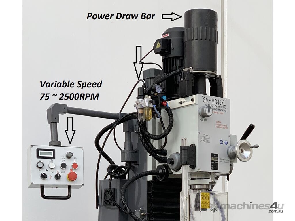 SM-MD45XL. Mill Drill with DRO. Steelmaster Geared Drive Mill Drill With Power Draw Bar, Coolant,