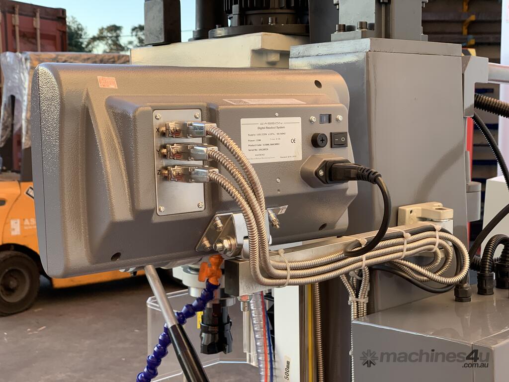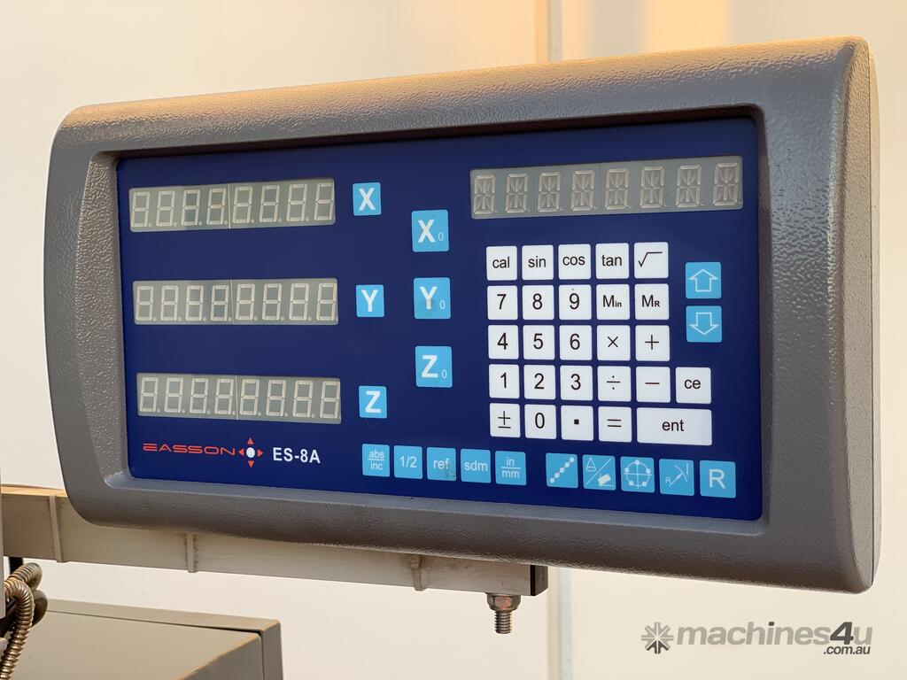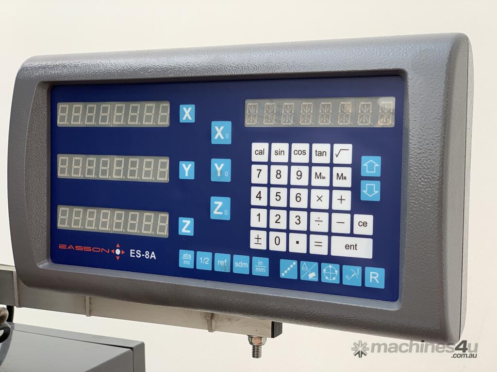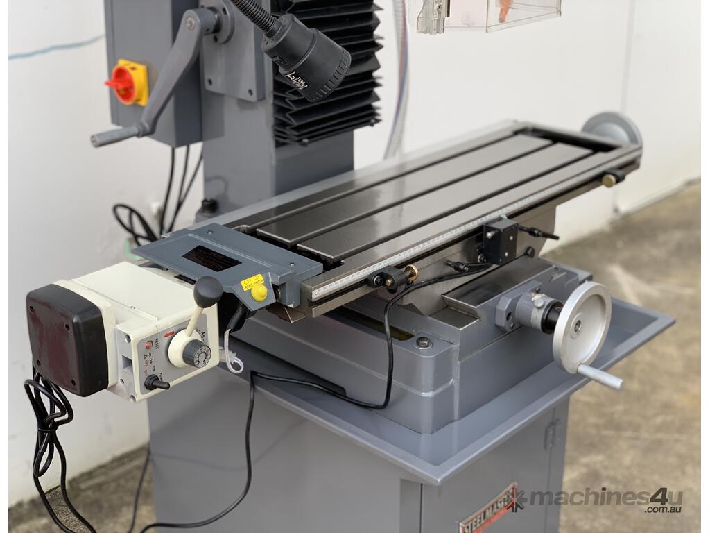 Now offered in our popular Industrial Grey Colour Schedule -This machine sports a dovetail column with a power feed & 3 Axis Digital Read Out. That’s right! No more cranking the head up and down for tool changes or clearance, just push a button and save yourself the trouble. And there’s more great features, too! A stand is supplied that has a coolant return trough. This adds mass and convenience to an already exceptional gear head mill. Check out the specs and don’t forget the tooling. You’ll want to fire this puppy up the minute it’s delivered!