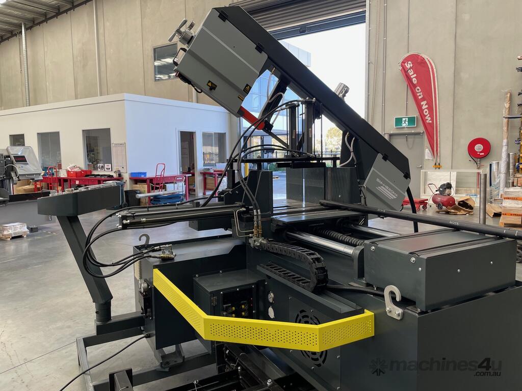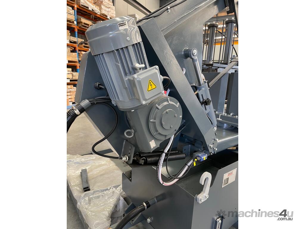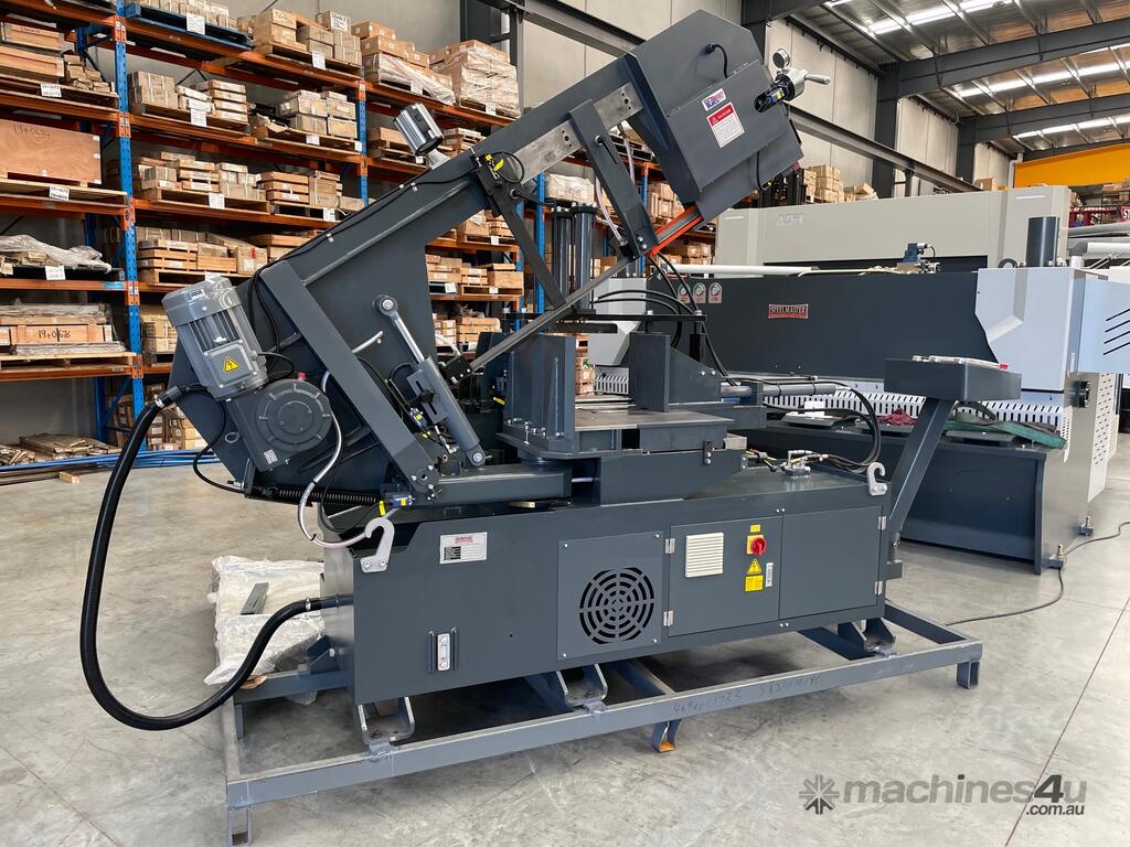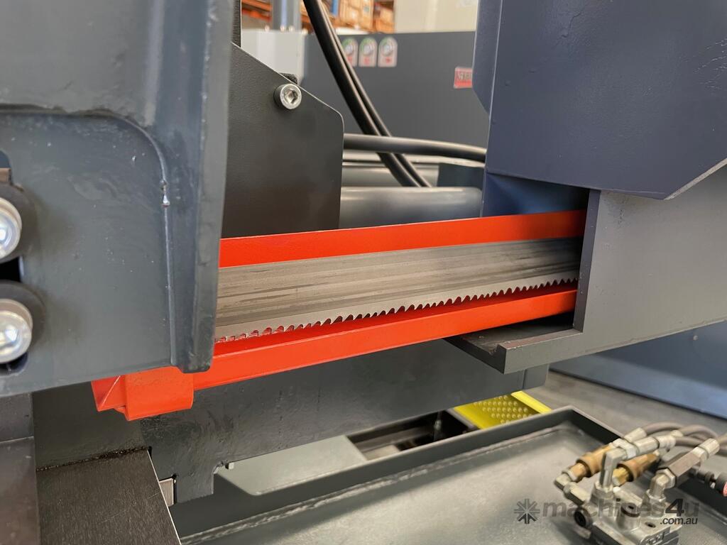This Large Capacity Heavy Duty full featured automatic Mitre-Cutting Bandsaw is so feature packed, we dont know where to start! Offering precision auto feed cutting capacity via linear guides, twin hydraulic vice, tungsten guides, NC controller, mitre cutting to 60°, duarable 34mm blade, variable speed control and built-in coolant system. If you're looking for something in this size range, you'll have a tough time finding a better metal-cutting band saw with these features and at this price anywhere else.