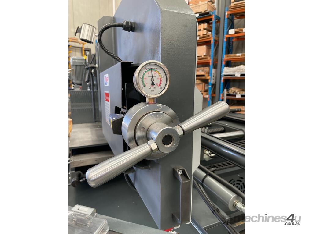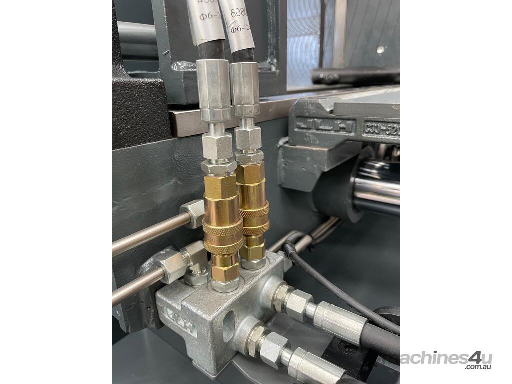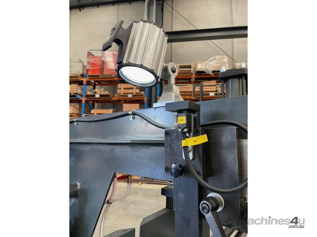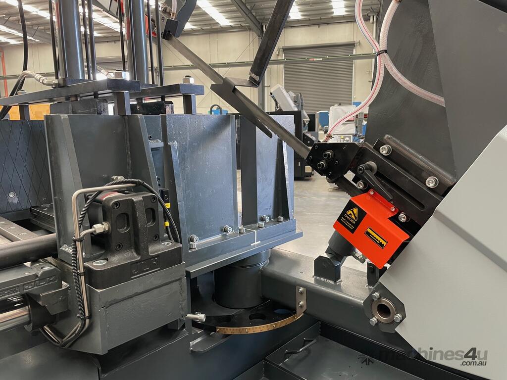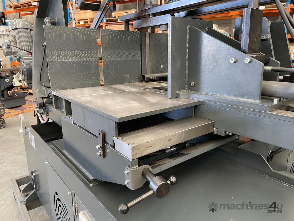 This Large Capacity Heavy Duty full featured automatic Mitre-Cutting Bandsaw is so feature packed, we dont know where to start! Offering precision auto feed cutting capacity via linear guides, twin hydraulic vice, tungsten guides, NC controller, mitre cutting to 60°, duarable 34mm blade, variable speed control and built-in coolant system. If you're looking for something in this size range, you'll have a tough time finding a better metal-cutting band saw with these features and at this price anywhere else.
