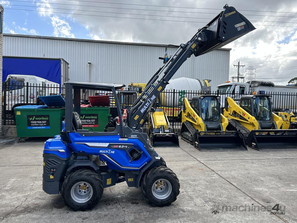 The 6.3+K mini loader from Multione is a strong powerful mini loader in a compact package. Featuring the same heavy-duty boom and spacious operator station found on the larger range of Multitone loaders. High-Torque piston motors and a short rear frame make this perfect for tight access earth works and easy to transport. This is the Multitone of choice for compact earthworks.