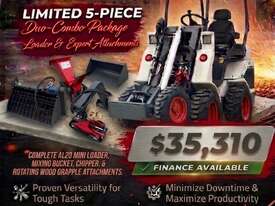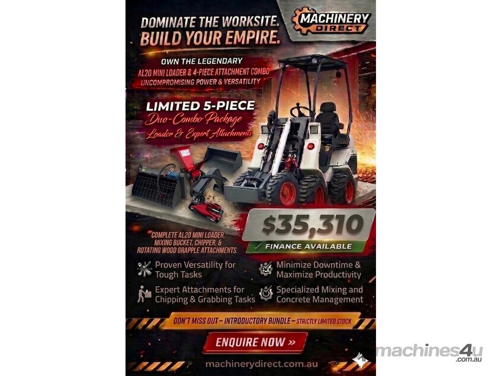 New Ozziquip AL20 Mini Loader 4-in-1 with Mixing Bucket, Chipper and Wood Grapple 5-Piece Package :      $32,100 AUD($35,310 Inc. GST)