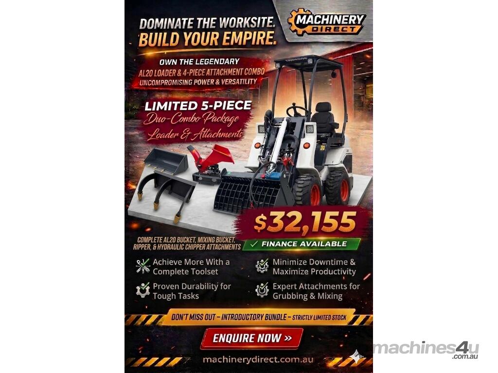 New Ozziquip AL20 Mini Loader 4-in-1 with Mixing Bucket, Ripper and Chipper 5-Piece Package :      $29,232 AUD($32,155 Inc. GST)