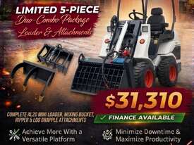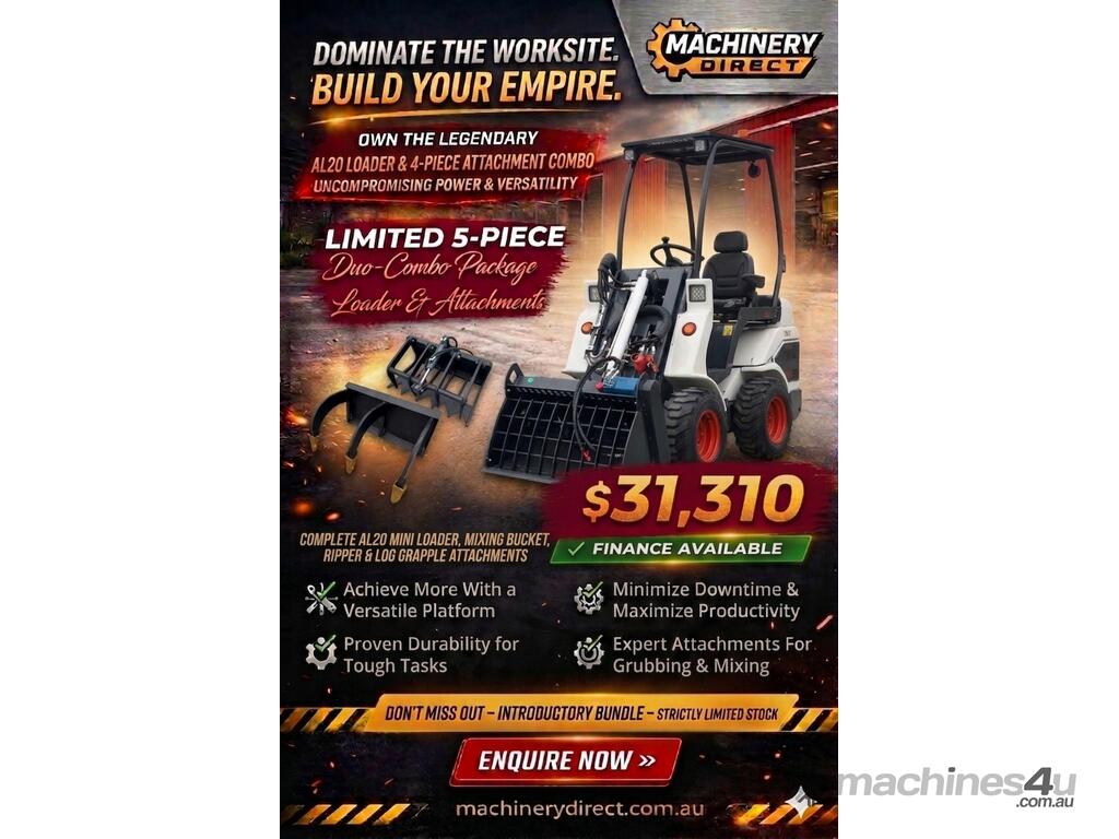 New Ozziquip AL20 Mini Loader 4-in-1 with Mixing Bucket, Ripper and Log Grapple 5-Piece Package :      $28,464 AUD($31,310 Inc. GST)
