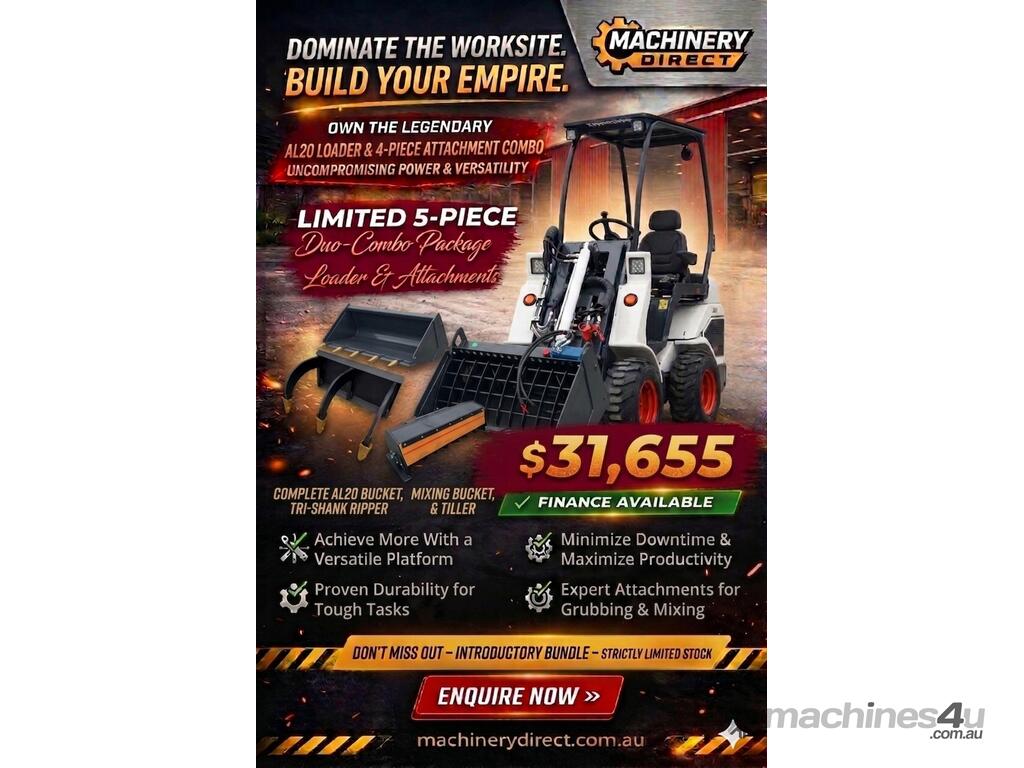 New Ozziquip AL20 Mini Loader 4-in-1 with Mixing Bucket, Ripper and Tiller 5-Piece Package :      $28,777 AUD($31,655 Inc. GST)