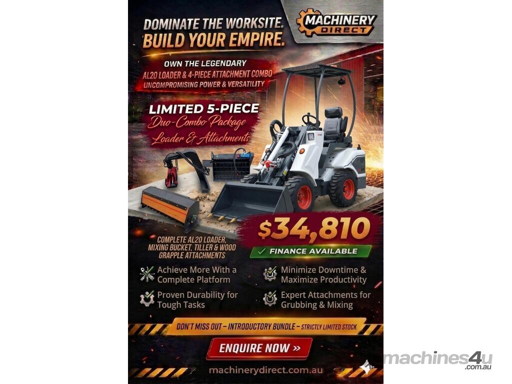 New Ozziquip AL20 Mini Loader 4-in-1 with Mixing Bucket, Tiller and Wood Grapple 5-Piece Package :      $31,645 AUD($34,810 Inc. GST)