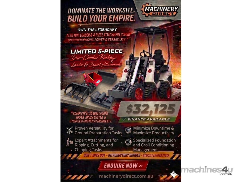 New Ozziquip AL20 Mini Loader 4-in-1 with Ripper, Brush Cutter, Chipper 5-Piece Package :      $29,205 AUD($32,125 Inc. GST)