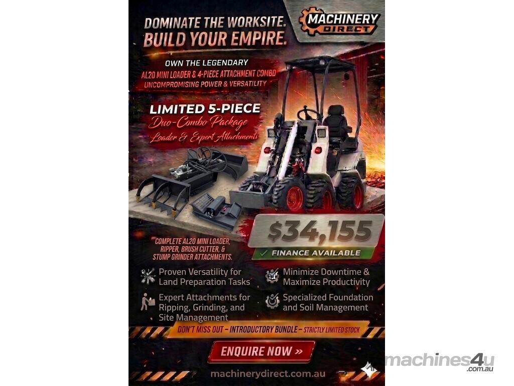 New Ozziquip AL20 Mini Loader 4-in-1 with Ripper, Brush Cutter and Stump Grinder 5-Piece Package :      $31,050 AUD($34,155 Inc. GST)