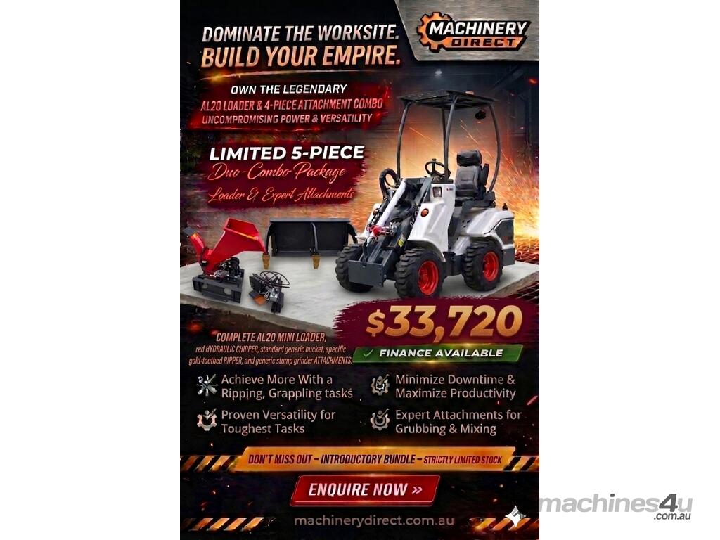 New Ozziquip AL20 Mini Loader 4-in-1 with Ripper, Stump Grinder and Chipper 5-Piece Package :      $30,655 AUD($33,720 Inc. GST)