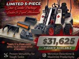 New Ozziquip AL20 Mini Loader 4-in-1 with Ripper, Tiller and Brush Cutter 5-Piece Package :      $28,750 AUD($31,625 Inc. GST)
