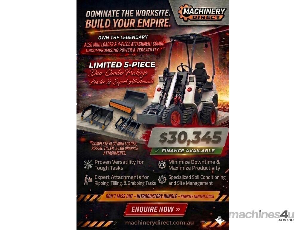 New Ozziquip AL20 Mini Loader 4-in-1 with Ripper, Tiller and Log Grapple 5-Piece Package :      $27,586 AUD($30,345 Inc. GST)
