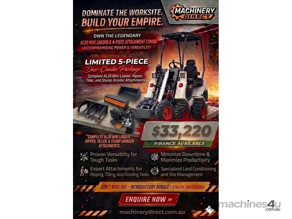 New Ozziquip AL20 Mini Loader 4-in-1 with Ripper, Tiller and Stump Grinder 5-Piece Package :      $30,200 AUD($33,220 Inc. GST)