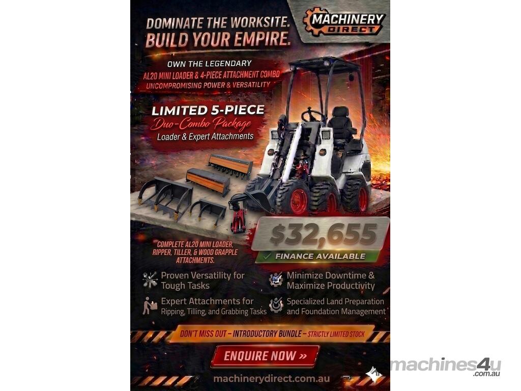 New Ozziquip AL20 Mini Loader 4-in-1 with Ripper, Tiller and Wood Grapple 5-Piece Package :      $29,686 AUD($32,655 Inc. GST)
