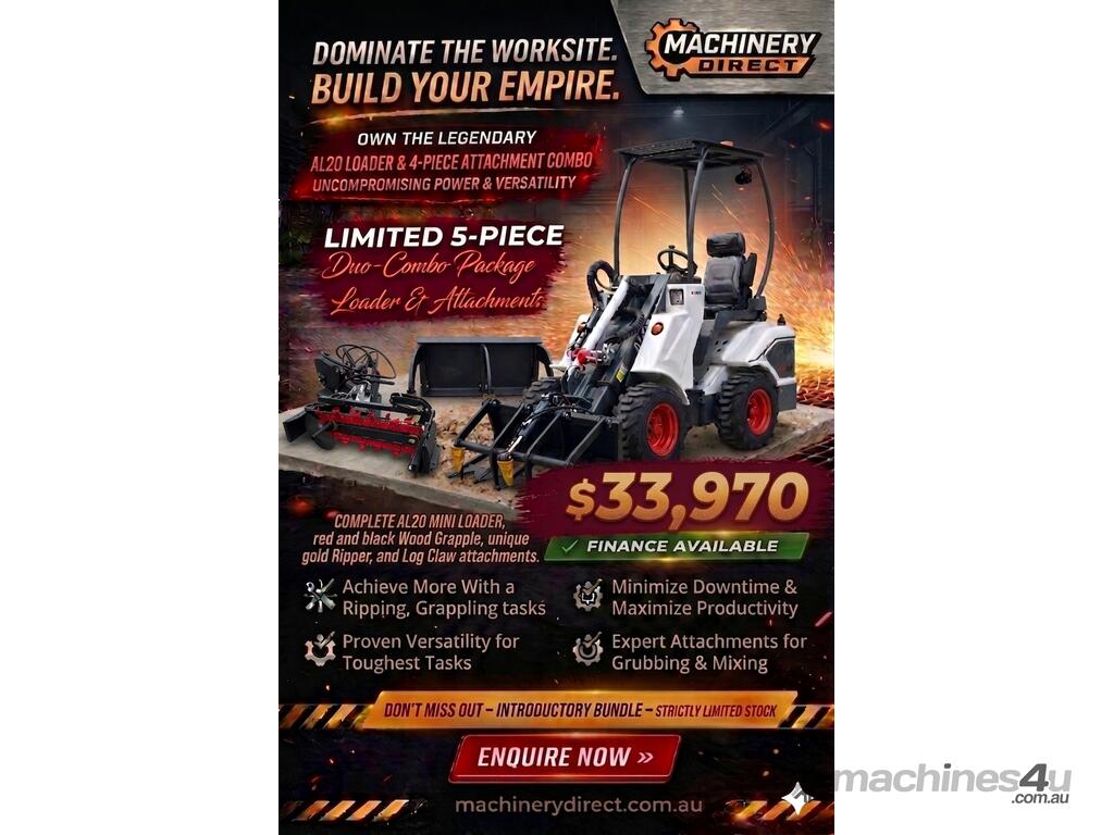 New Ozziquip AL20 Mini Loader 4-in-1 with Ripper, Trencher and Stump Grinder 5-Piece Package :      $30,882 AUD($33,970 Inc. GST)