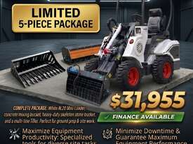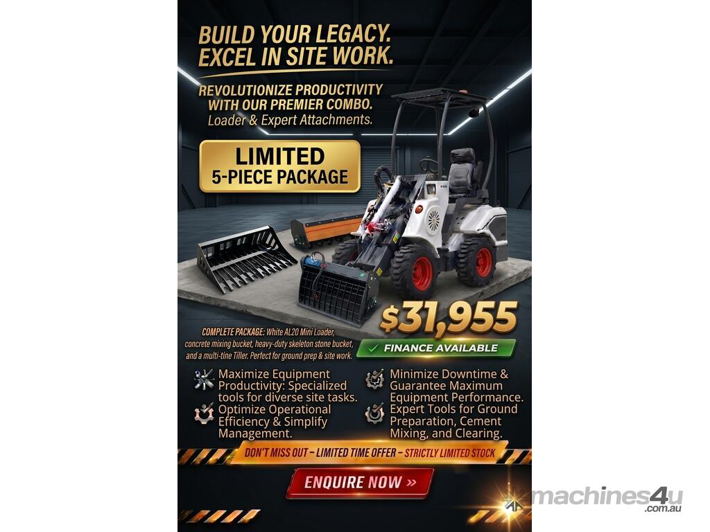 New Ozziquip AL20 Mini Loader 4-in-1 with Stone Bucket, Mixing Bucket, Tiller 5-Piece Package :      $29,050 AUD($31,955 Inc. GST)