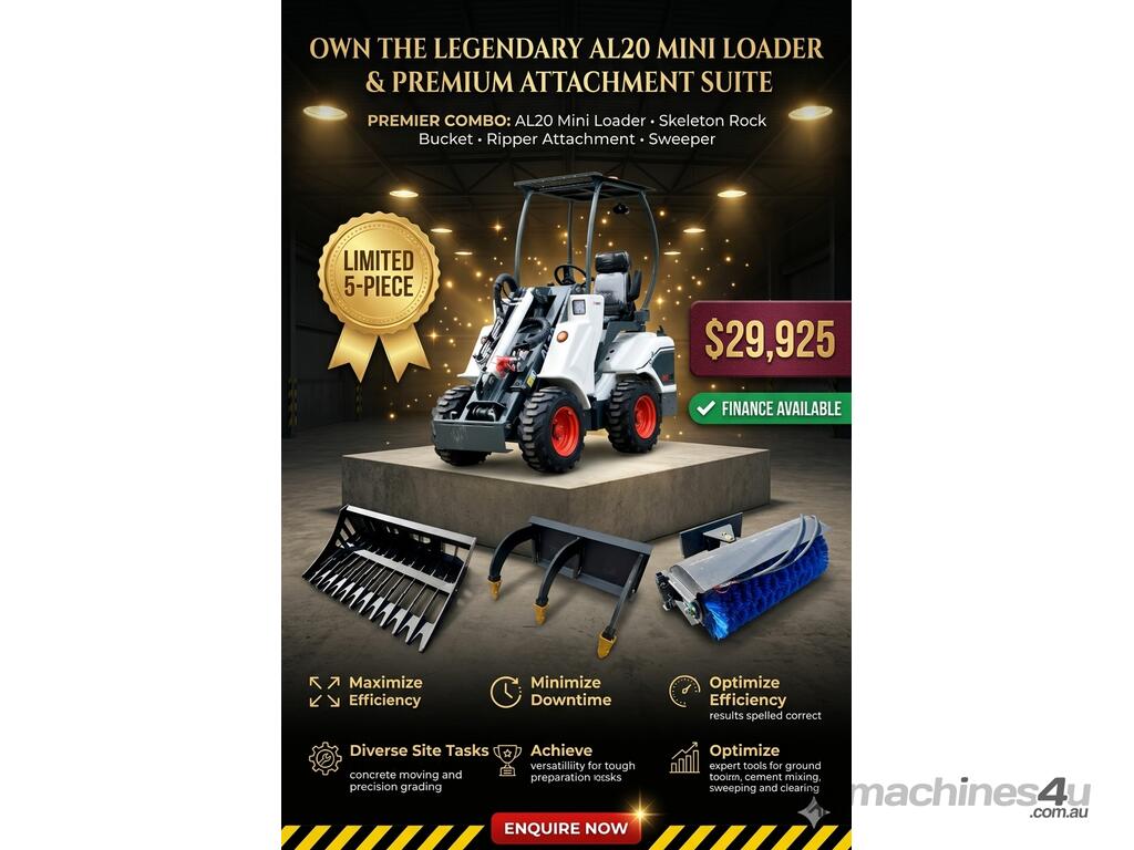 New Ozziquip AL20 Mini Loader 4-in-1 with Stone Bucket, Ripper and Sweeper 5-Piece Package :      $27,205 AUD($29,925 Inc. GST)