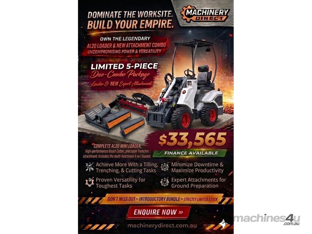 New Ozziquip AL20 Mini Loader 4-in-1 with Tiller, Brush Cutter and Trencher 5-Piece Package :      $30,514 AUD($33,565 Inc. GST)