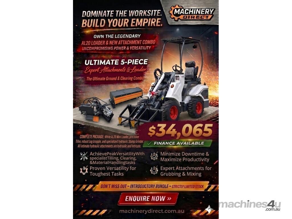 New Ozziquip AL20 Mini Loader 4-in-1 with Tiller, Log Grapple and Stump Grinder 5-Piece Package :      $30,968 AUD($34,065 Inc. GST)