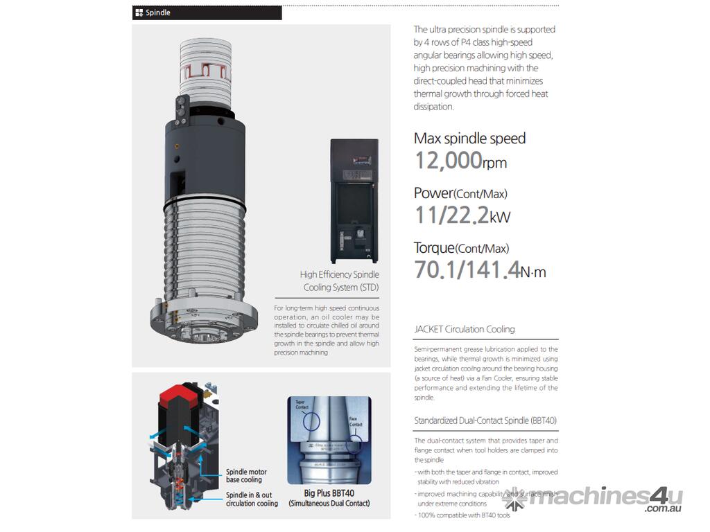 - 12,000rpm BBT40 in-line Spindle - 15k Spindle Optional