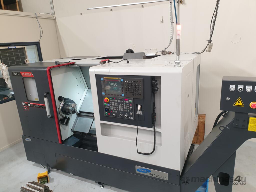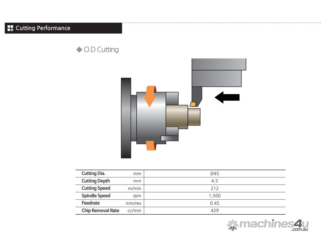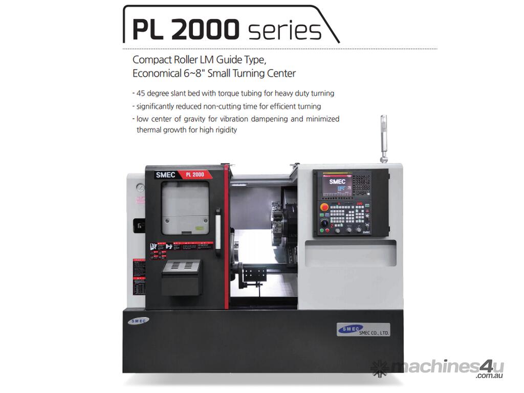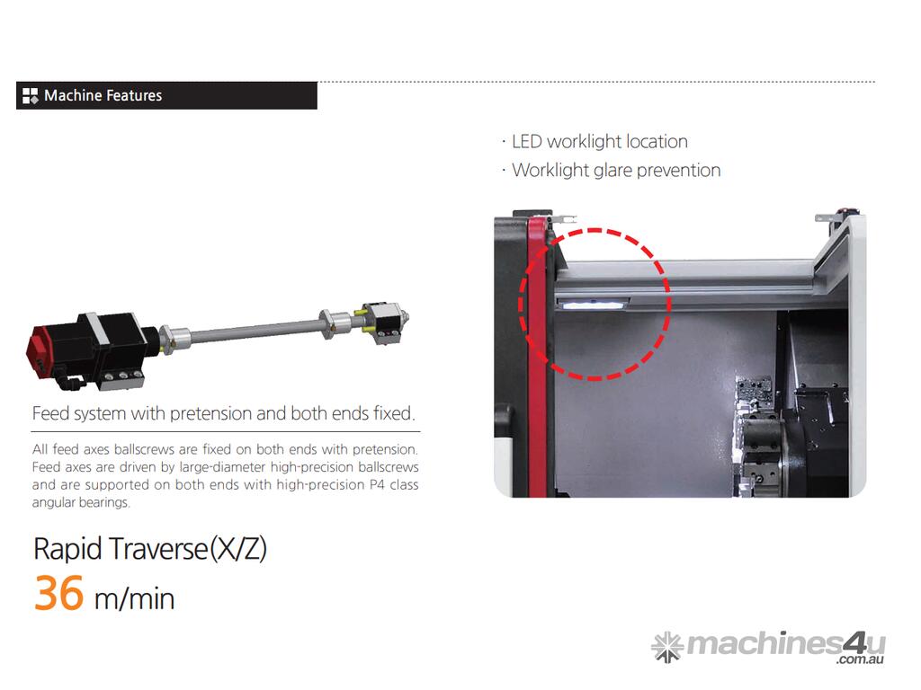 - Korean Made CNC Slant Bed Lathe with Linear Rails, optional C axis Live Tool capabilities, fanuc control system, designed for general engineering and manufacturing.