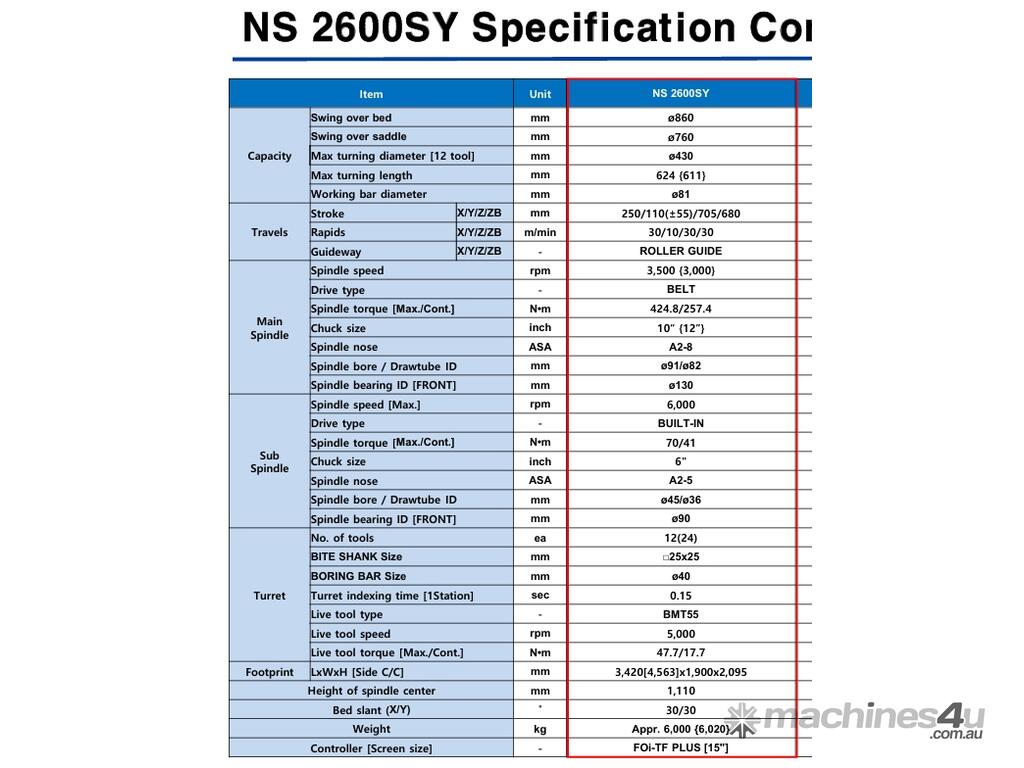 New NS2600SY SMEC - (SAMSUNG MachineTools Engineering Company).
