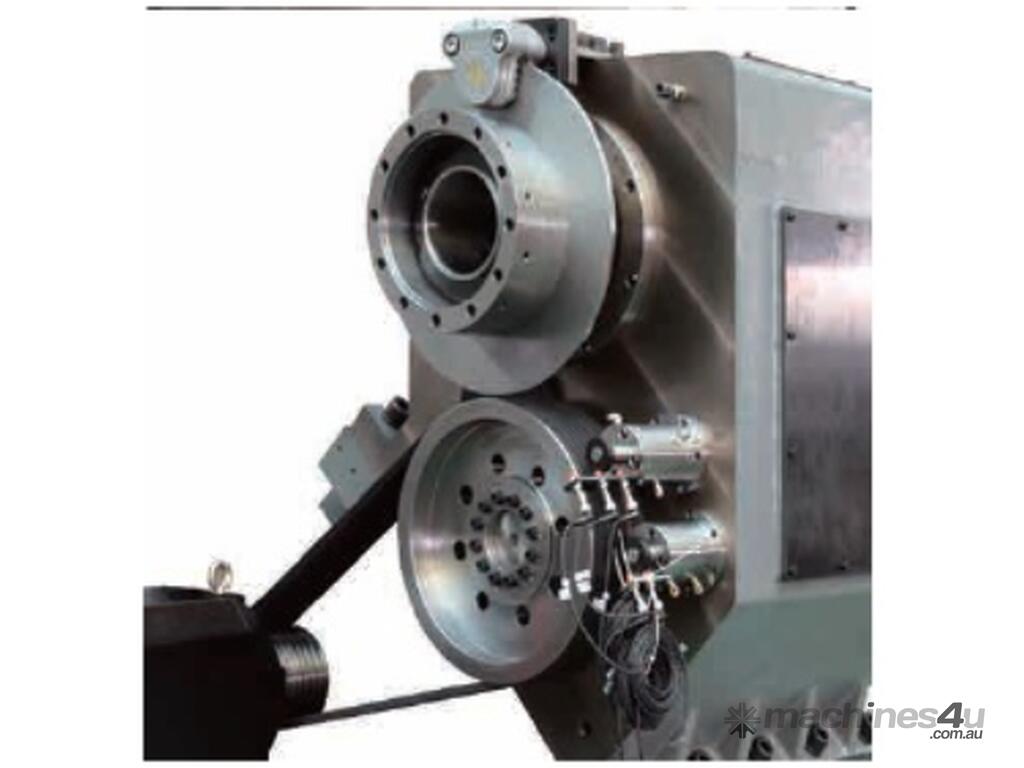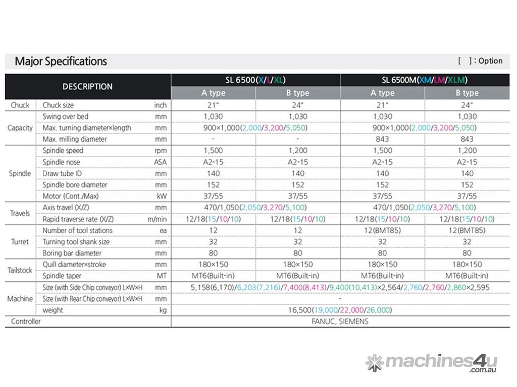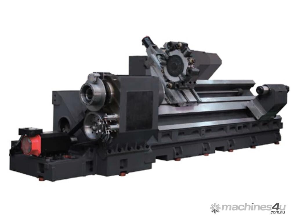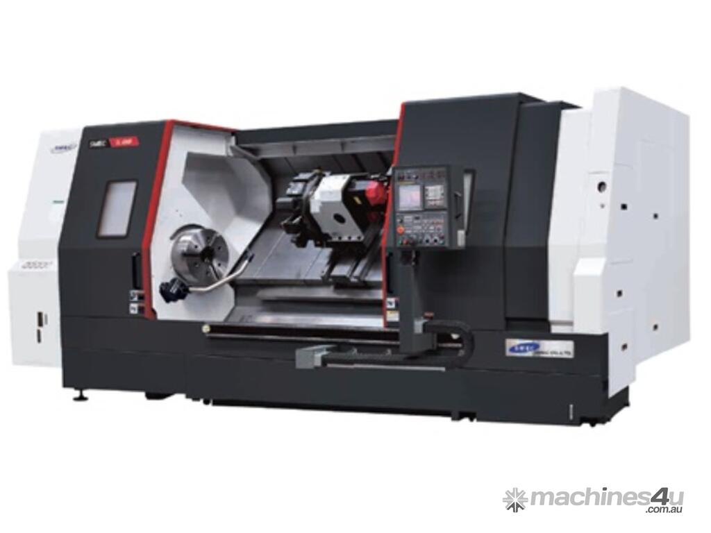 - Korean Made CNC Slant Bed Lathe with solid slides including optional C axis Live Tool capabilities, fanuc control system, designed for general engineering and Oil/Gas industry.