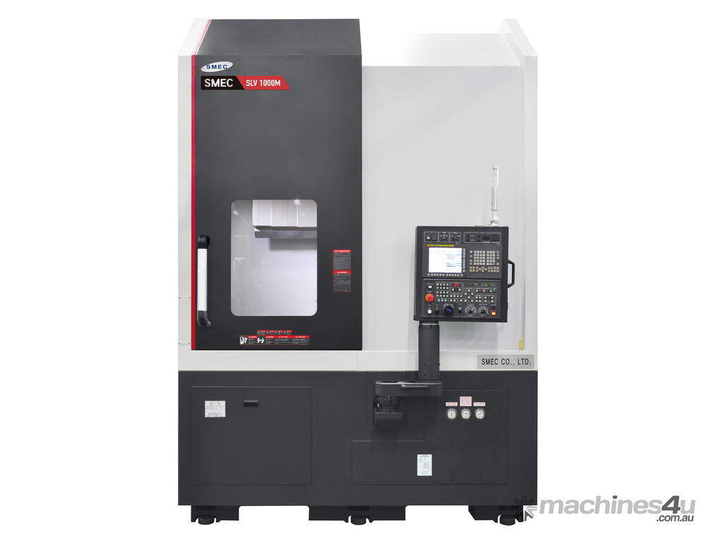 Korean Made CNC Vertical Lathe with solid slides including optional C axis Live Tool capabilities, fanuc control system, designed for rigidity and performance.