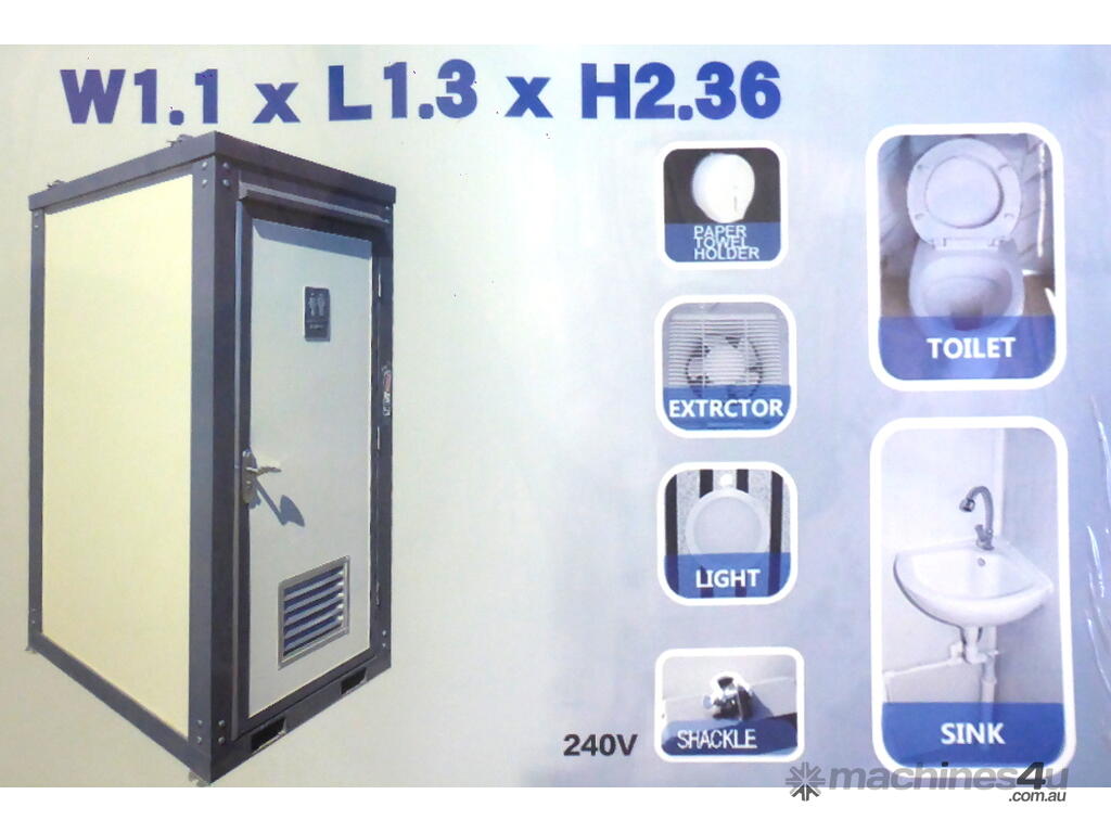 Toilets is complete but the cistern cover, toilet lid, ceiling light and exhaust fan have been tapped up to prevent damage in transport.