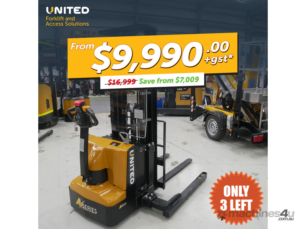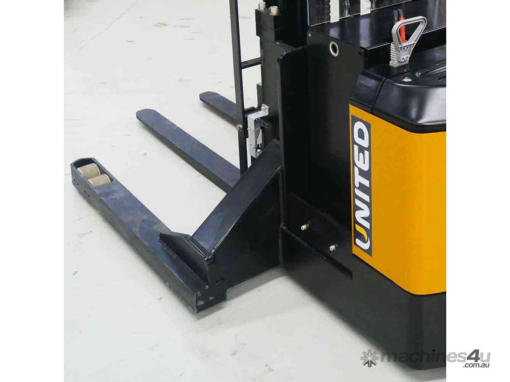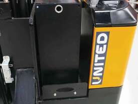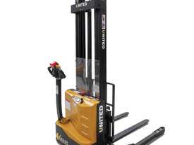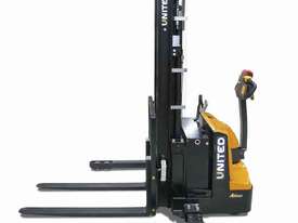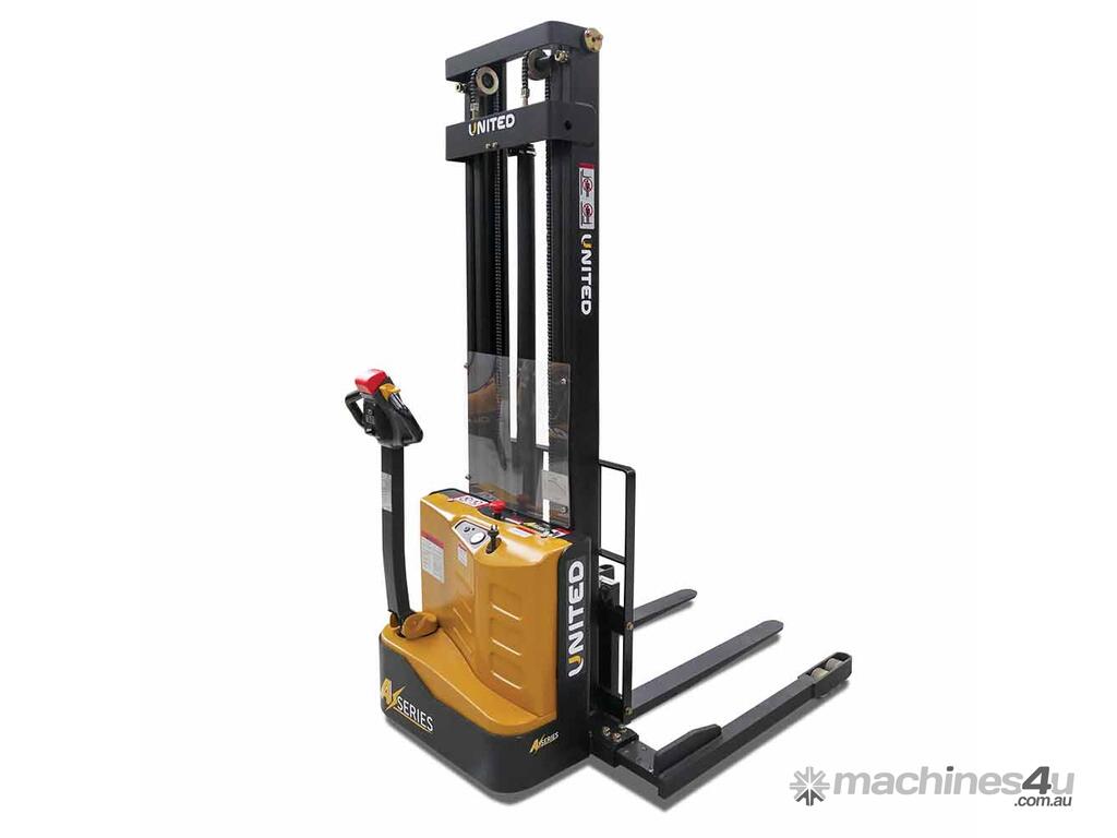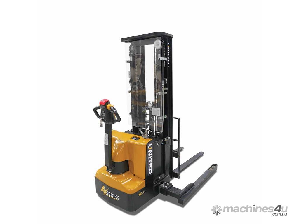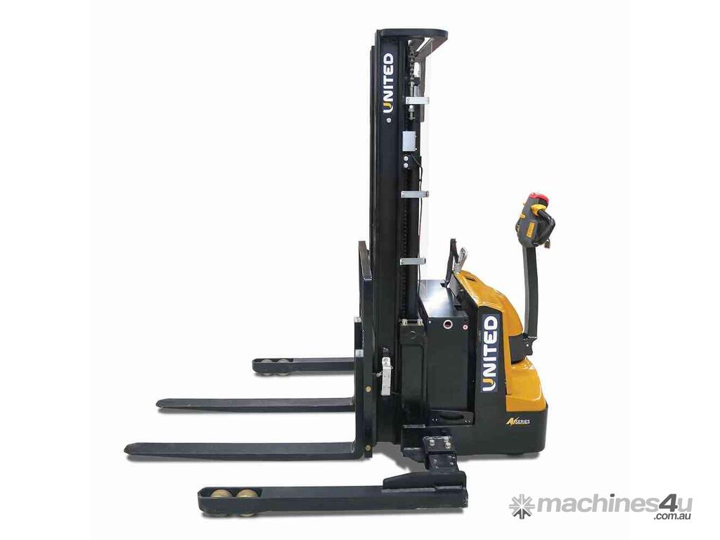 The United A-Series walkie stacker is a heavy-duty electric stacker designed for efficient material handling in tight warehouse aisles. With a compact chassis and ergonomic controls, it supports safe and reliable stacking operations in demanding warehouse environments.